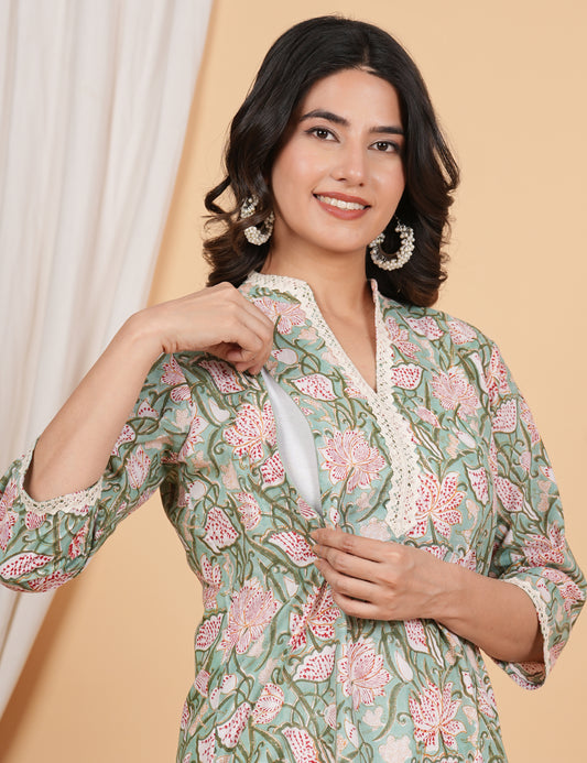 Sanatan Handblock Printed Cotton Nursing Feeding Dress