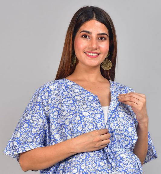 Karuna Nidhan Handblock Cotton Maternity Nursing Kaftan