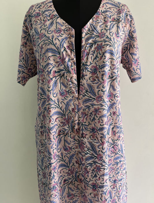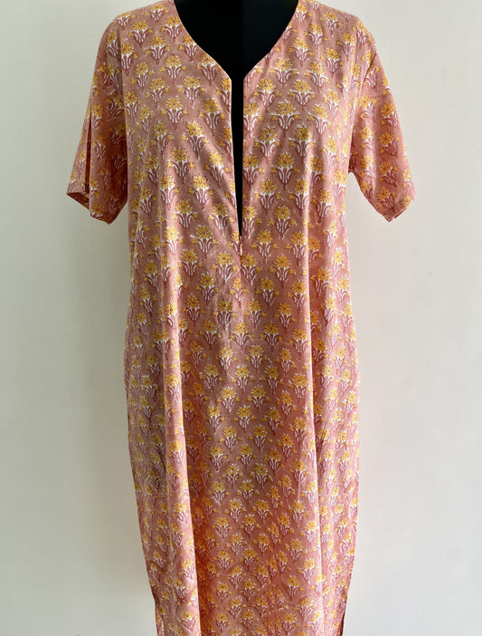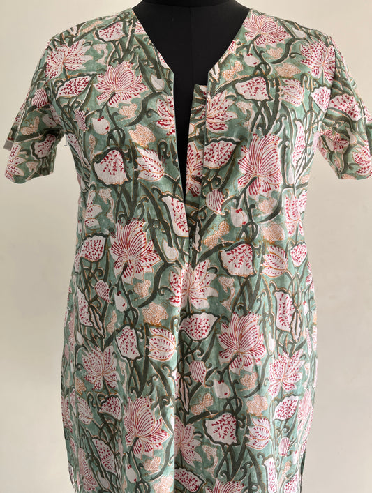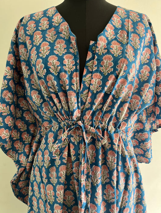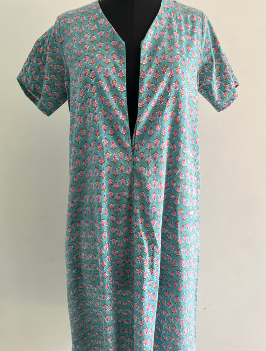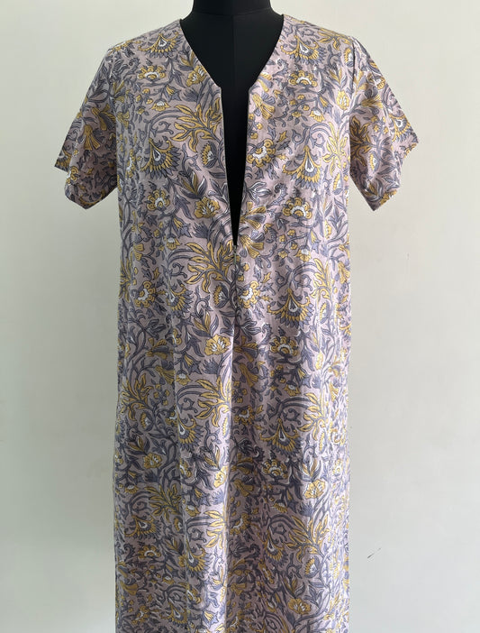 Kadamb Handblock Cotton Nursing Kaftan Gown