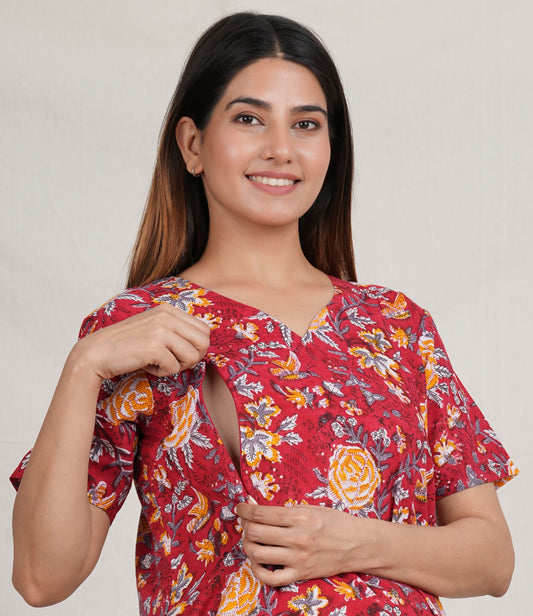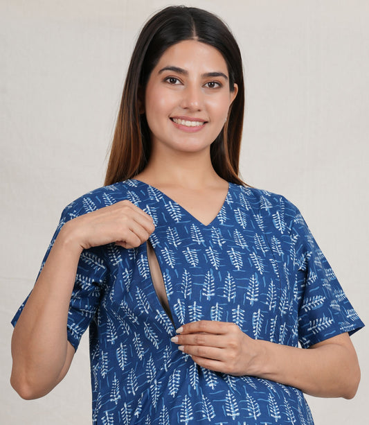 Nadiya Vihari Handblock Cotton Nursing Gown