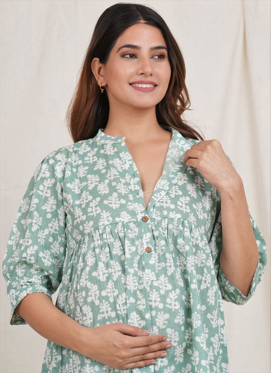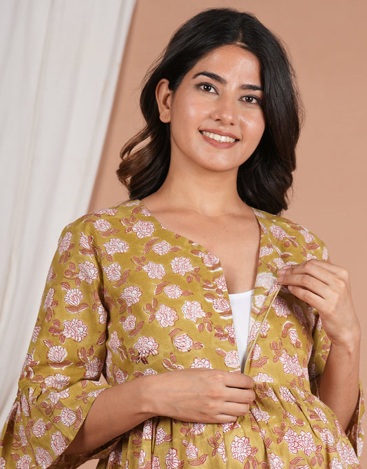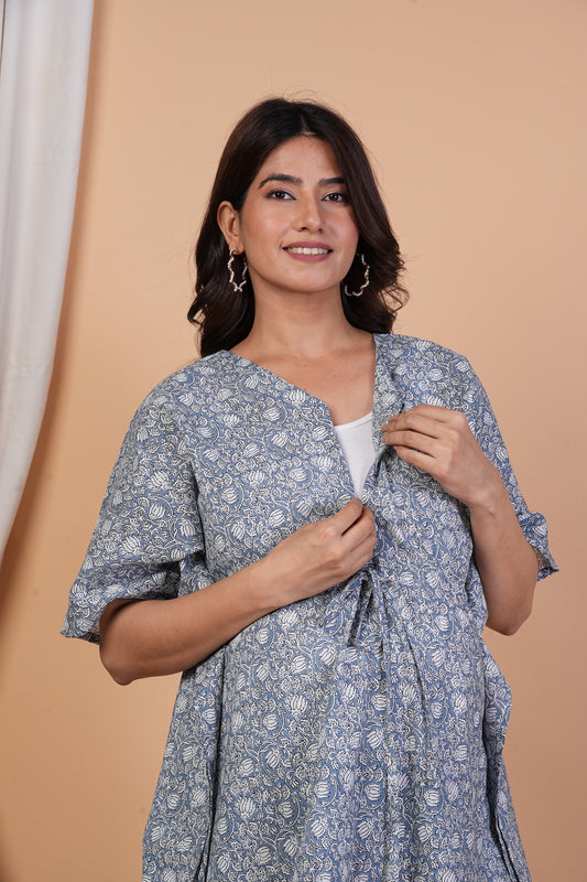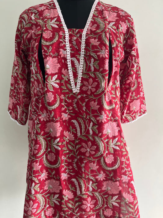 Kartamaasi Handblock Printed Cotton Maternity Nursing Loungewear Set | Kurti | Suit Set
