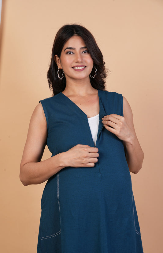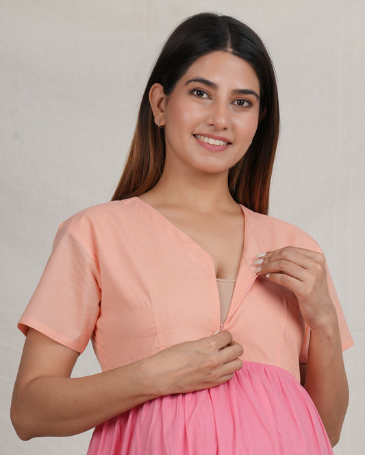Madhurya Twin Zip Cotton Maternity Feeding Dress