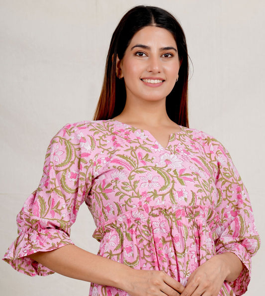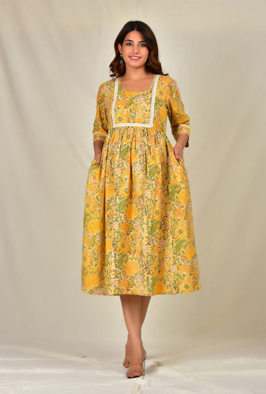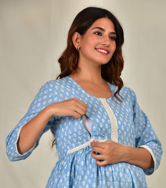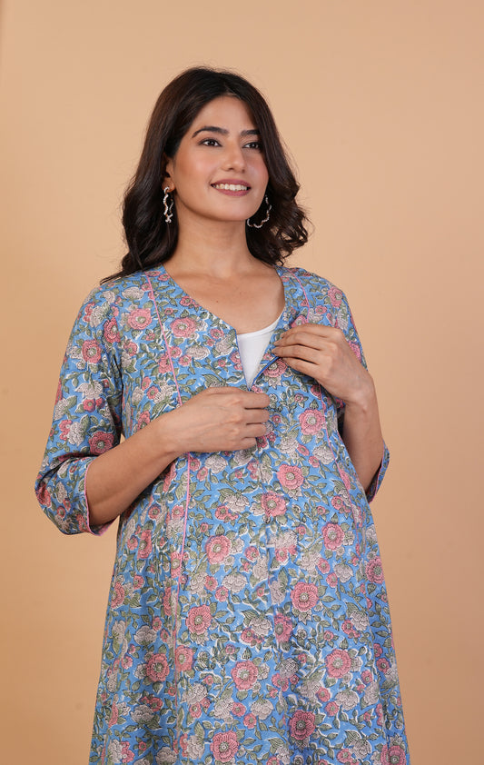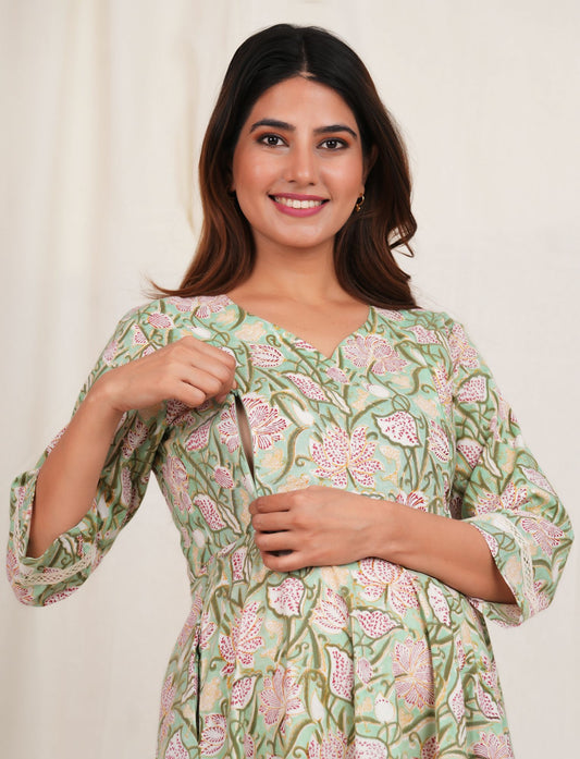 Sanatan Handblock Printed Cotton Nursing Feeding Dress