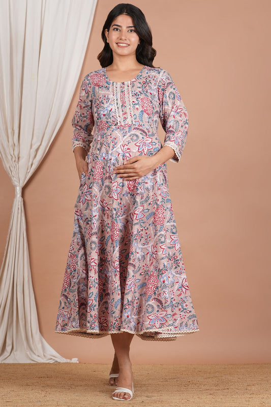 Karuna Nidhaan Handblock Cotton Nursing Maxi Dress