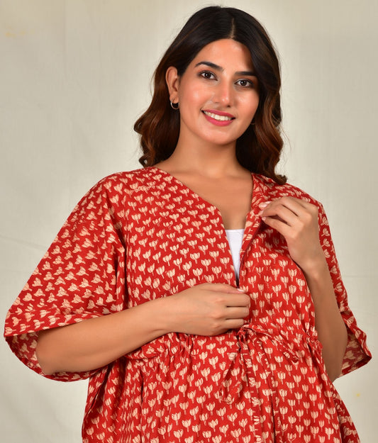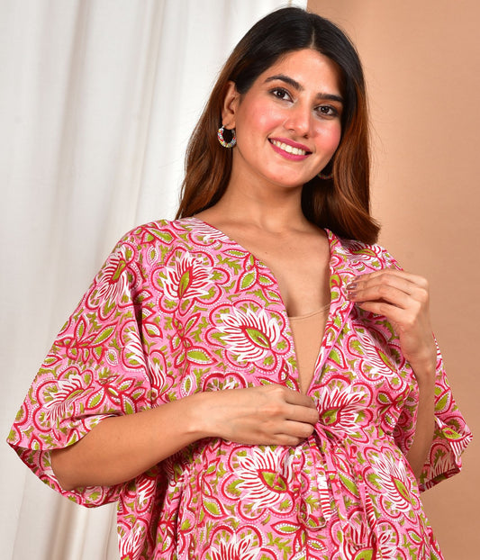 Pure Cotton Handblock Maternity Feeding Kaftan