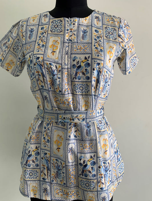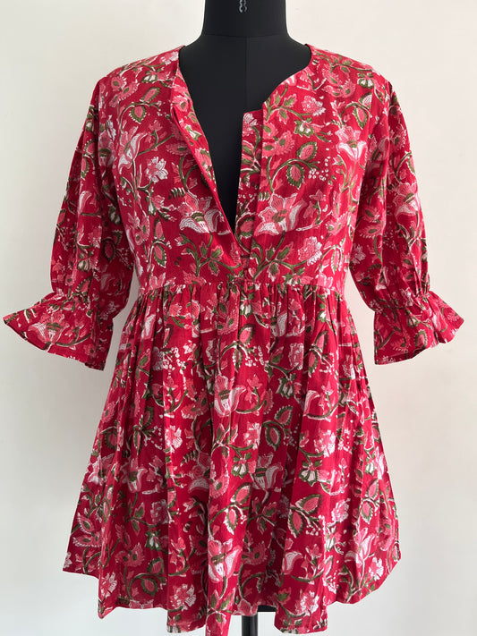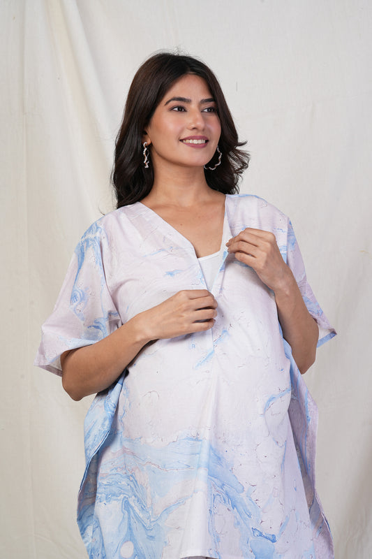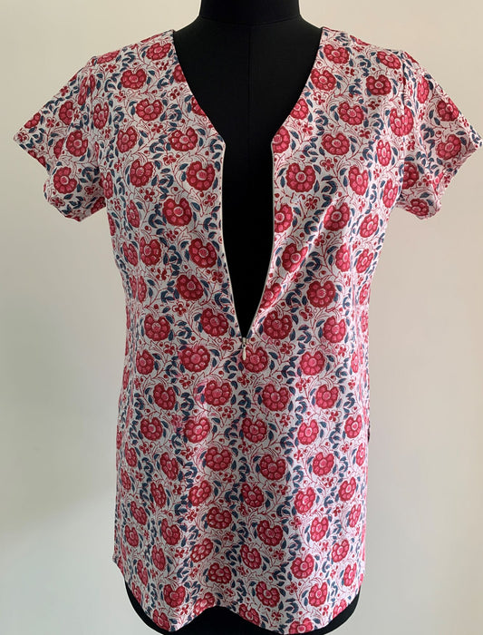 Vraj Devike Handblock Cotton Nursing Top with Twin Zip